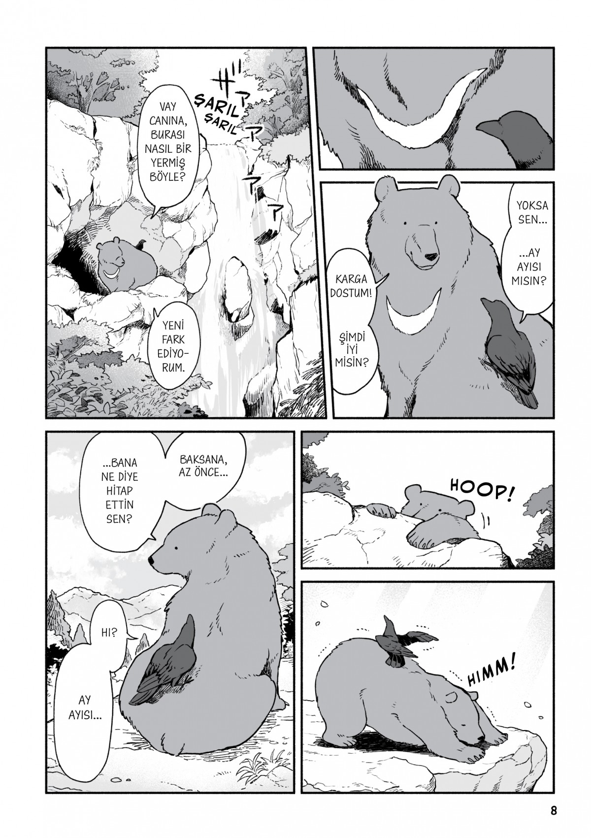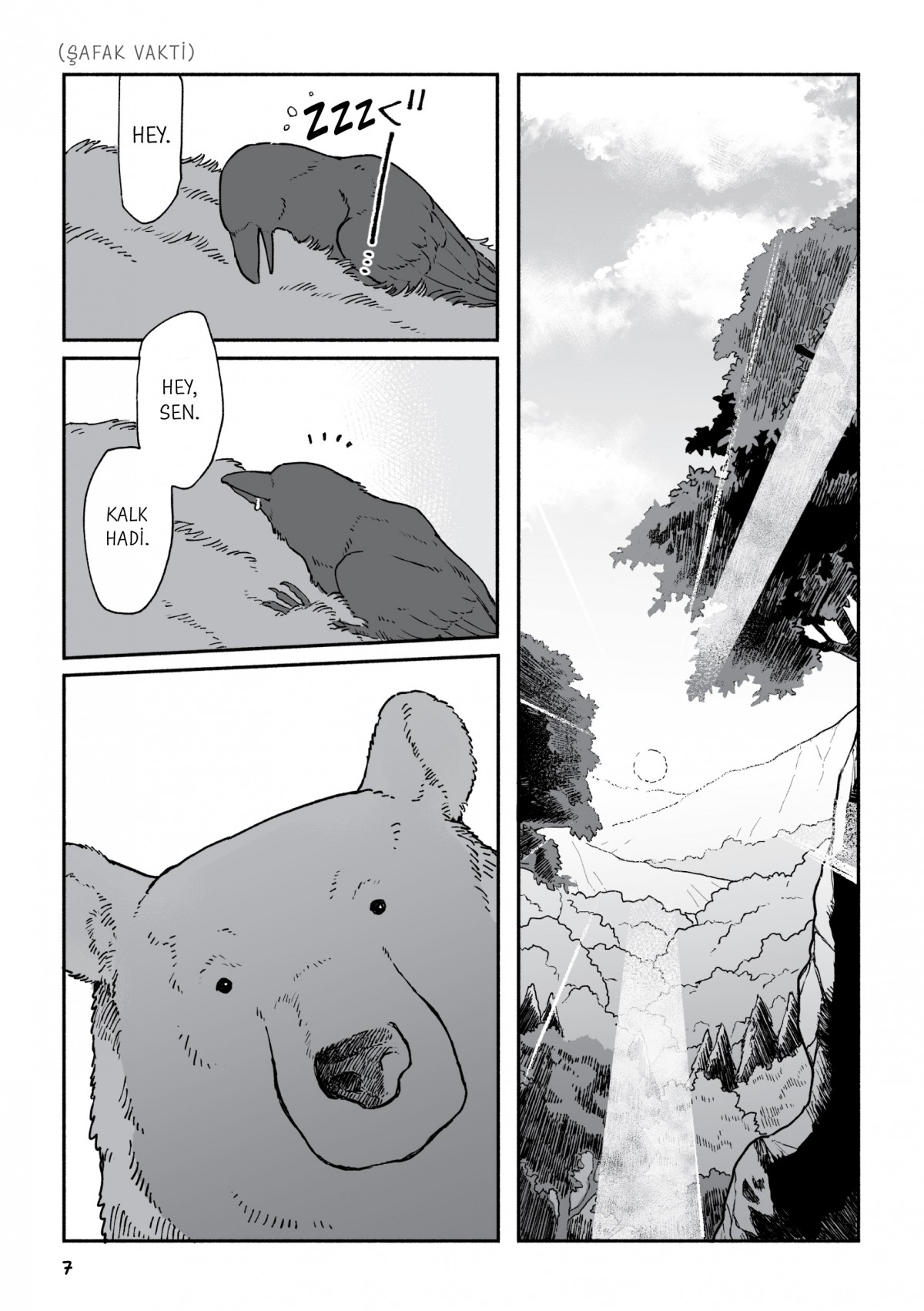 Japonya'da bir adada, ormanın derinliklerinde yalnız bir ayı yaşarmış. Küçük yaşta ailesinden ayrı düşmüş bu ayı, günlerini bir başına geçirirmiş. Ta ki şehirden gelen bir karga ile yolu kesişene dek. Omuz omuza veren bu iki arkadaş, birlikte bir yolculuğa çıkıyor. Ayı kendi türdeşlerinin peşine düşerken, karga da eve dönüş yolunu arayacak. Dağları ve ormanları aşarken dostlukları pekişecek ve hedeflerine adım adım yaklaşacaklar... peki aradıklarını gerçekten bulabilecekler mi?